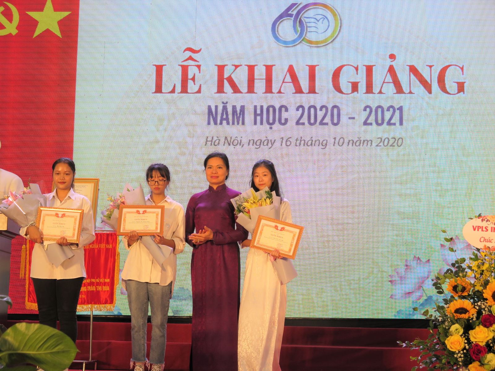 Chủ tịch Hội LHPN Việt Nam và Thứ trưởng Bộ GD & ĐT trao học bổng cho các tân cử nhân của HV