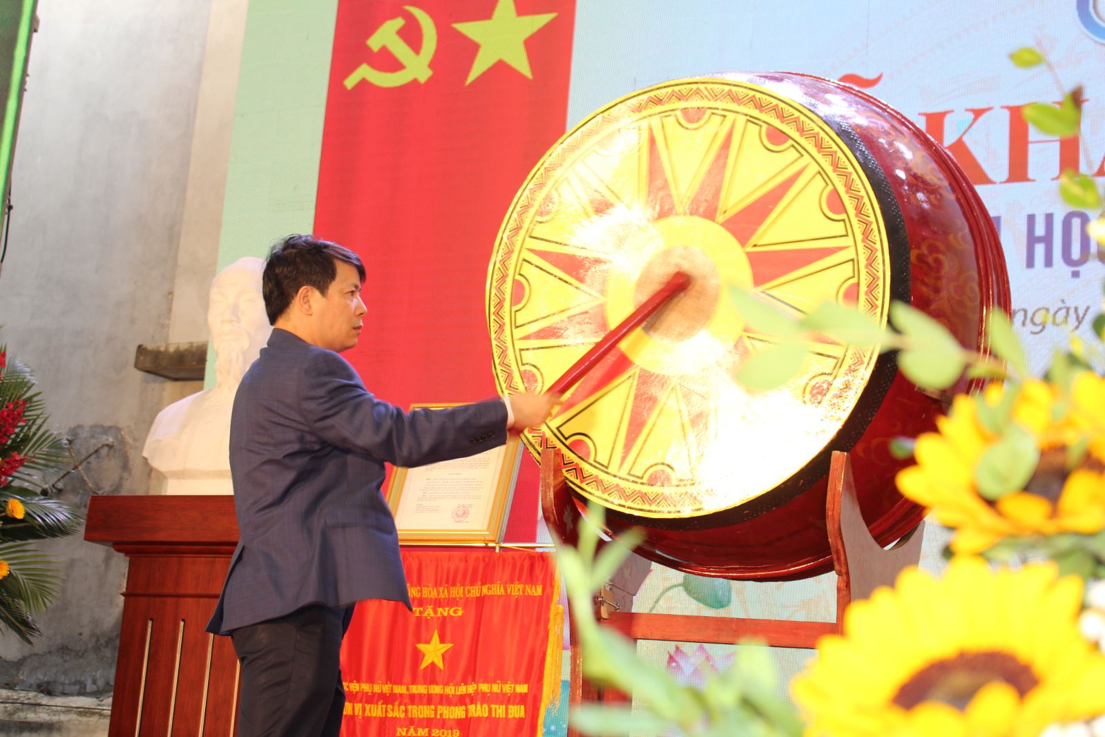 PGS.TS Trần Quang Tiến – Giám đốc Học viện Phụ nữ Việt Nam đánh trống khai giảng năm học 2020 – 2021