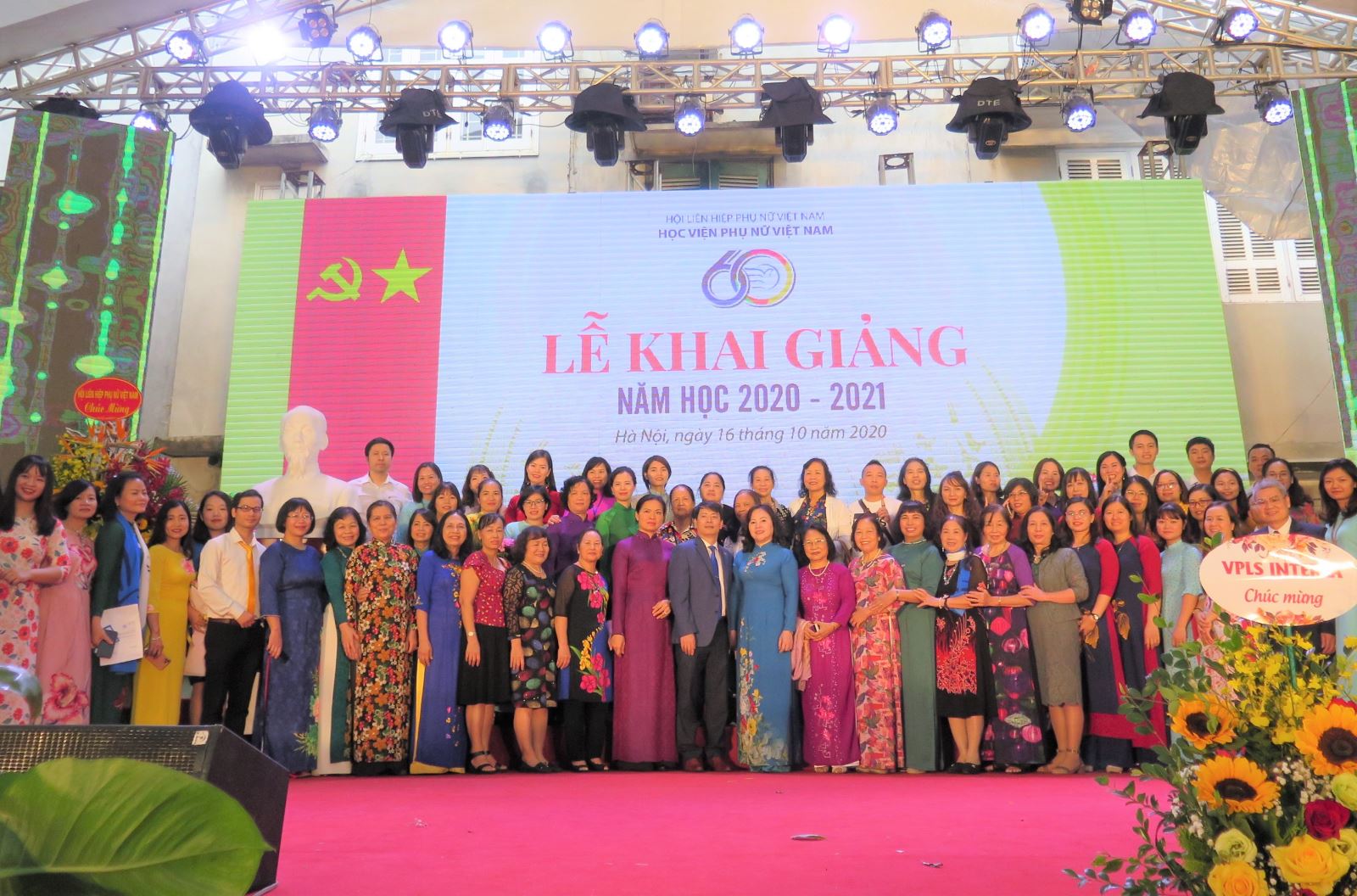Thừa ủy quyền, đồng chí Hà Thị Nga – Chủ tịch Hội LHPN Việt Nam trao tặng Cờ thi đua của Chính phủ cho Học viện Phụ nữ Việt Nam.