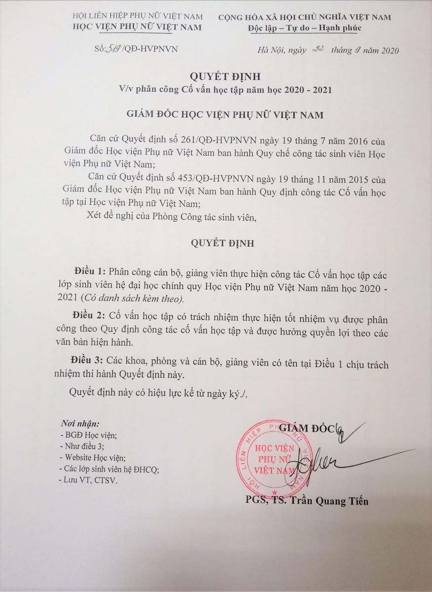 Tin tứcQuyết định Phân công cố vấn học tập năm học 2020 – 2021 Posted on Tháng Ba 4, 2024 by admin(full) 04 Th3 DANH SÁCH CỐ VẤN HỌC TẬP NĂM HỌC 2020 – 2021 admin(full) Thông báo về việc thu hồ sơ xét chế độ chính sách cho sinh viên K8 HK1, năm học 2020-2021 Thông báo kế hoạch nhập học của SV Khóa 8