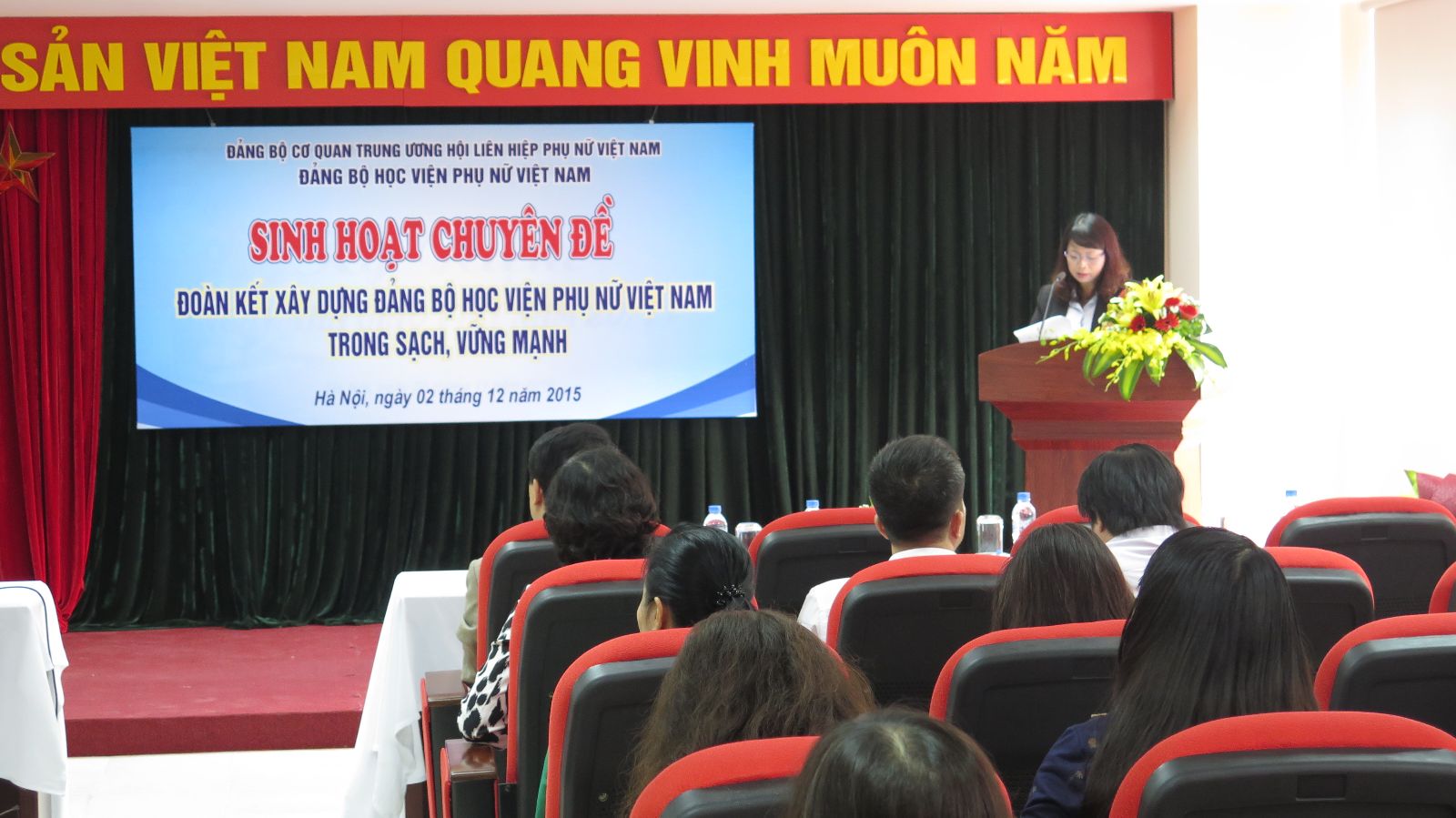 Buổi sinh hoạt chuyên đề Đoàn kết xây dựng Đảng bộ Học viện Phụ nữ Việt Nam trong sạch, vững mạnh đã diễn ra thành công ngoài mong đợi. Bí thư Đảng ủy, Giám đốc Học viện Trần Quang Tiến đã biểu dương tinh thần lao động sáng tạo của đảng viên và quần chúng các chi bộ. Đây sẽ là điểm nhấn, một sự đổi mới hiệu quả trong việc thay đổi hình thức sinh hoạt chuyên đề của đảng bộ. Đồng chí bí thư cũng hi vọng hình thức sinh hoạt này sẽ được tiếp tục phát huy và những nội dung được gửi gắm trong các tiết mục sẽ là bài học gần gũi mà sâu sắc cho tất cả đảng viên và quần chúng vì một Học viện phát triển bền vững.