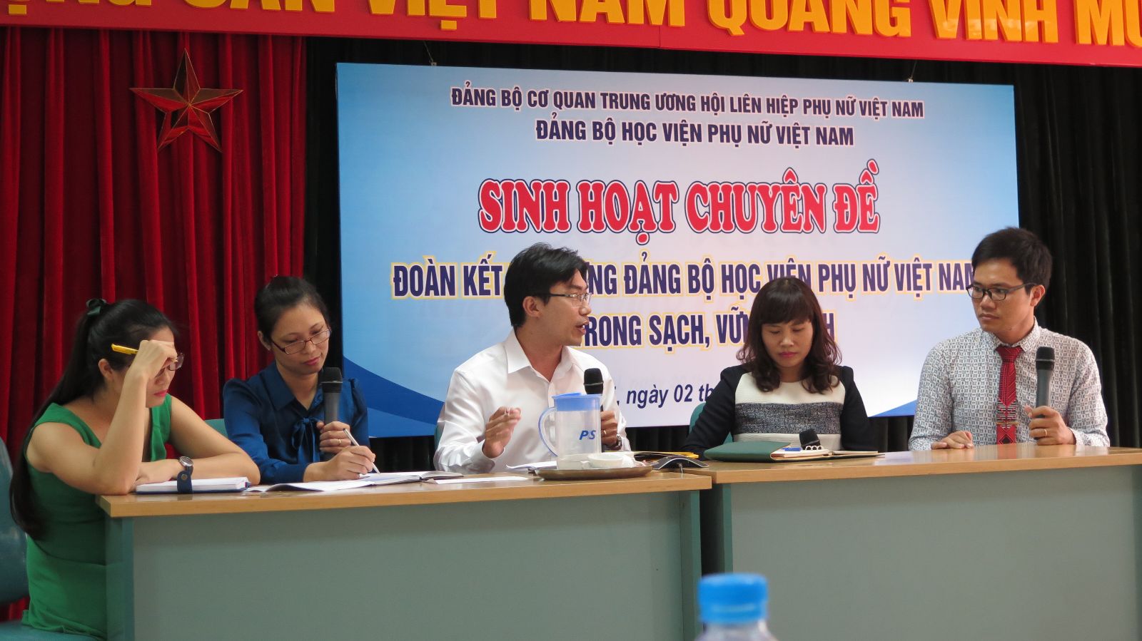 Thấm nhuần tư tưởng đạo đức Hồ Chí Minh trong công tác xây dựng Đảng, xây dựng môi trường làm việc trong sạch, vững mạnh, đoàn kết, trách nhiệm, Đảng ủy Học viện Phụ nữ Việt Nam đã giao cho các chi bộ chuẩn bị tham luận và tiểu phẩm tham gia buổi sinh hoạt chuyên đề.