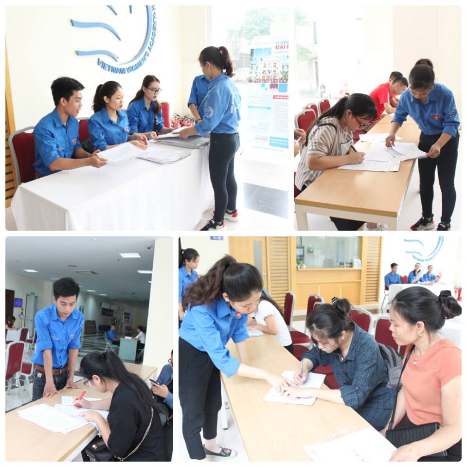 Em Nguyễn Thị Thu Thảo đăng ký ngành Luật đến từ miền Trung nắng gió xúc động chia sẻ: Tôi cũng giống như bao tân sinh viên khác rời miền trung nắng gió với bao khó khăn vất vả để ra Hà Nội học. Đến với Học viện Phụ nữ Việt Nam dường như bao mệt nhọc đều tan biến bởi những ước vọng tươi sáng tràn đầy của tuổi trẻ trong tôi được tiếp thêm sức sống. Cảm xúc khác lạ về buổi đầu tiên bước chân vào đại học khiến tôi thực sự thích thú với suy nghĩ rằng mình đã lớn.  Trường đại học rộng lớn và dễ chịu, tôi có thể thả hồn theo những cơn gió mát rượi lùa qua từng hàng ghế đá yên bình. Những dãy giảng đường rộng rãi, cao vút cứ thôi thúc trong tôi một điều gì đó như là động lực… Tôi nhủ thầm: “Một thế giới khác đã mở ra, kể từ nay, tôi chính thức tự thay đổi cuộc sống của mình theo hướng tích cực. Tôi sẽ chủ động tạo cơ hội cho bản thân mình mới hơn, năng động hơn, chững chạc hơn. Bước chân vào đại học, chúng tôi có quyền nghĩ về một tương lai xa, đã có thể tự tin hoạch định những mục tiêu của riêng mình. Cũng có thể ngày này năm sau, tôi lại là người hướng dẫn các tân sinh viên K7 đến nhập học với cảm giác hồi hộp và ngập tràn niềm vui khó tả như mình hôm nay …”