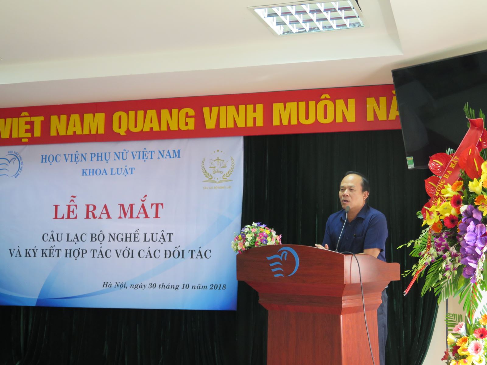 Thay mặt Ban Giám đốc Học viện, TS. Trần Quang Tiến gửi lời chúc mừng đến Khoa Luật với sự khởi đầu mới đầy ý nghĩa đối với sinh viên, giảng viên của khoa và khẳng định mô hình CLB nghề Luật không chỉ giúp các bạn sinh viên có môi trường thực hành, rèn luyện nghề mà còn giúp các bạn xây dựng tác phong làm việc độc lập, chuyên nghiệp và có kiến thức vững vàng sau khi ra trường. Học viện sẽ tạo điều kiện để CLB có sự khởi đầu vững vàng. TS. Trần Quang Tiến cũng tin tưởng với sự nhiệt tình, tâm huyết của đội ngũ giảng viên khoa Luật và các chuyên gia, đối tác tư vấn về chuyên môn, hỗ trợ về vật chất sẽ giúp mô hình CLB nghề Luật ngày càng phát triển bền vững.