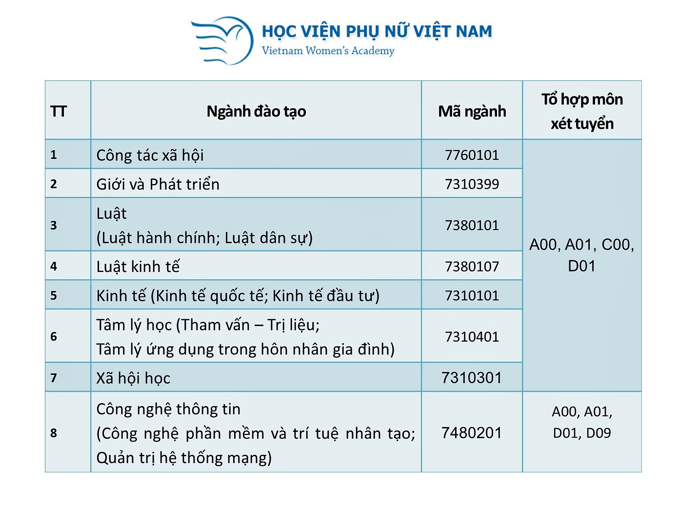 Website: www.tuyensinh.hvpnvn.edu.vn; Email: tuyensinh@vwa.edu.vn;
