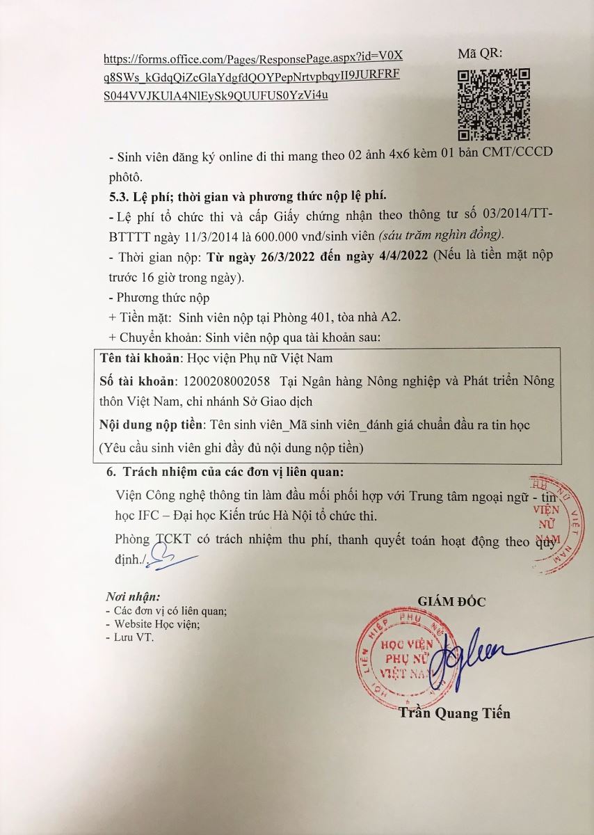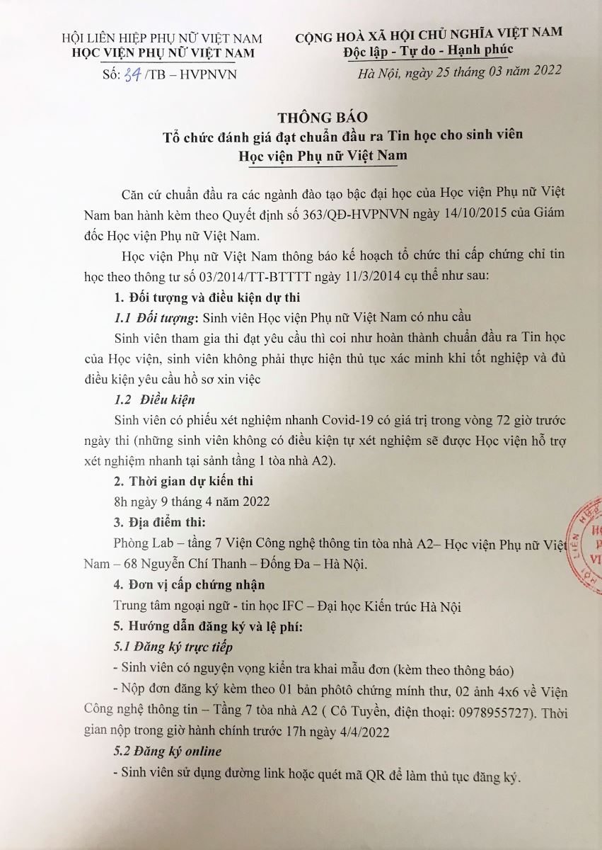 Tin tứcThông báo đánh giá đạt chuẩn đầu ra Tin học cho sinh viên Posted on Tháng Ba 4, 2024 by admin(full) 04 Th3 LINK ĐĂNG KÝ ONLINE admin(full) Tuyển sinh 2022: Dự kiến thí sinh chỉ đăng ký xét tuyển một lần duy nhất Thông báo một số nội dung liên quan đến tuyển dụng