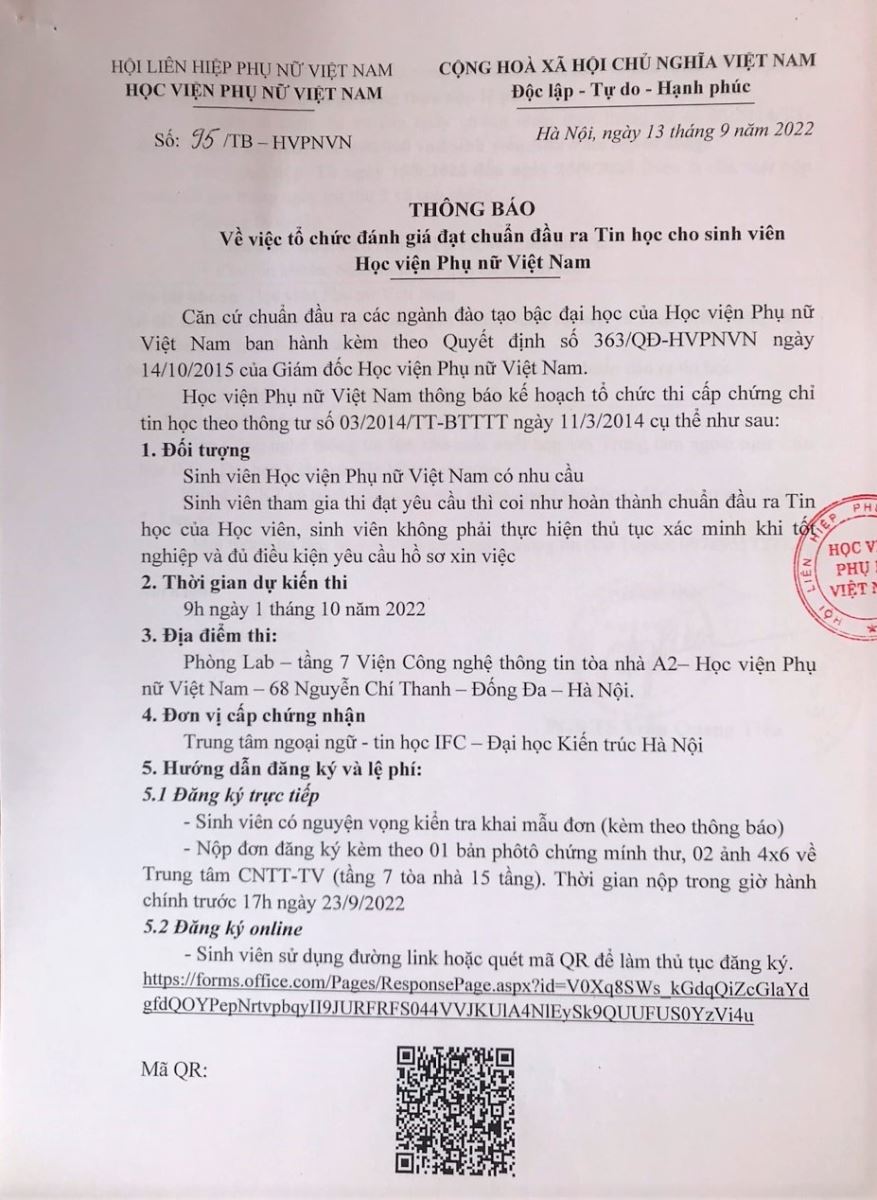 Tin tứcThông báo đánh giá đạt chuẩn đầu ra Tin học cho sinh viên Posted on Tháng Ba 4, 2024 by admin(full) 04 Th3 Sinh viên có nhu cầu dự thi mời đăng ký TẠI ĐÂY Quét mã QR admin(full) Thông báo một số nội dung liên quan đến tuyển dụng nhân sự đợt 2 năm 2022 Thông báo kế hoạch đánh giá năng lực Tiếng Anh khóa 10