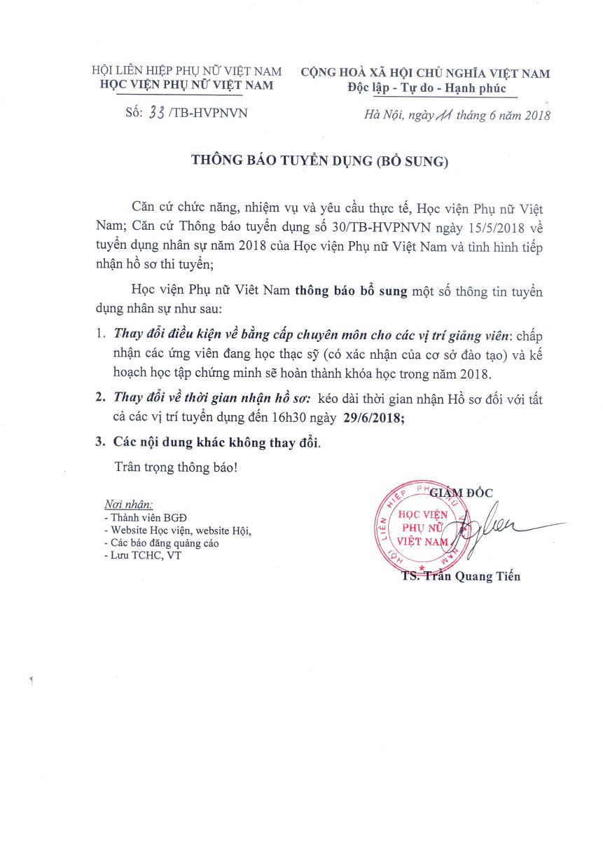 Tin tứcTHÔNG BÁO GIA HẠN TUYỂN DỤNG NHÂN SỰ 2018 Posted on Tháng Ba 4, 2024 by admin(full) 04 Th3 Mời bạn đọc xem nội dung chi tiết của Thông báo Tuyển dụng TẠI ĐÂY admin(full) Quyết định Ban hành Quy tắc ứng xử Học việnHọc viện Phụ nữ Việt Nam tổ chức khóa bồi dưỡng nâng cao năng lực viên chức và người lao động