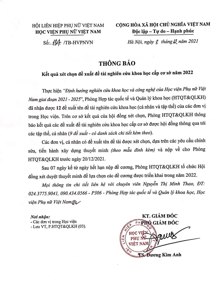 Sau quá trình đánh giá nghiêm túc, khách quan, 9 đề xuất nghiên cứu khoa học của cá nhân và tập thể đã được lựa chọn để thực hiện các thủ tục tiếp theo.