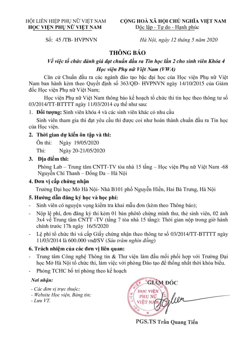 Tin tứcThông báo lịch đánh giá đạt chuẩn đầu ra Tin học lần 2 dành cho SV khóa 4 Posted on Tháng Ba 4, 2024 by admin(full) 04 Th3 Mẫu đơn đăng ký dự thi đánh giá đạt chuẩn đầu ra Tin học admin(full) Sinh viên trở lại trường hoàn thành kỳ học kỳ 2 năm học 2019 – 2020 Cơ hội việc làm cho sinh viên Học viện Phụ nữ Việt Nam