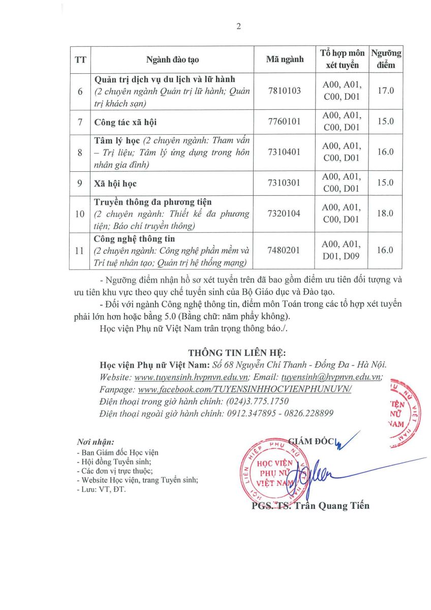 Website: https://tuyensinh.hvpnvn.edu.vn/; Email: tuyensinh@vwa.edu.vn;