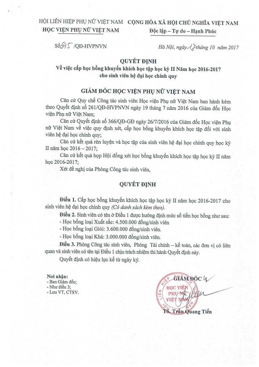 Tin tứcThông báo Quyết định cấp học bổng khuyến khích học kỳ II năm học 2016 – 2017 Posted on Tháng Ba 4, 2024 by admin(full) 04 Th3 Download Danh sách sinh viên nhận học bổng TẠI ĐÂY admin(full) Hội thảo Chính sách của Việt Nam trong lĩnh vực giáo dục về Giới & Gia đình Thông báo về nhu cầu đăng ký thủ tục Nội trú