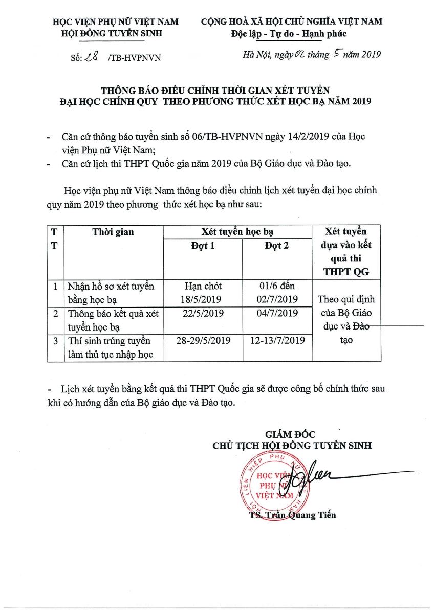 Tin tứcThông báo thay đổi thời hạn xét tuyển học bạ năm 2019 Posted on Tháng Ba 4, 2024 by admin(full) 04 Th3 admin(full) Học viện Phụ nữ Việt Nam tổ chức khóa tập huấn: Truyền thông trên mạng xã hội THÔNG BÁO TUYỂN SINH ĐẠI HỌC CHÍNH QUY 2019