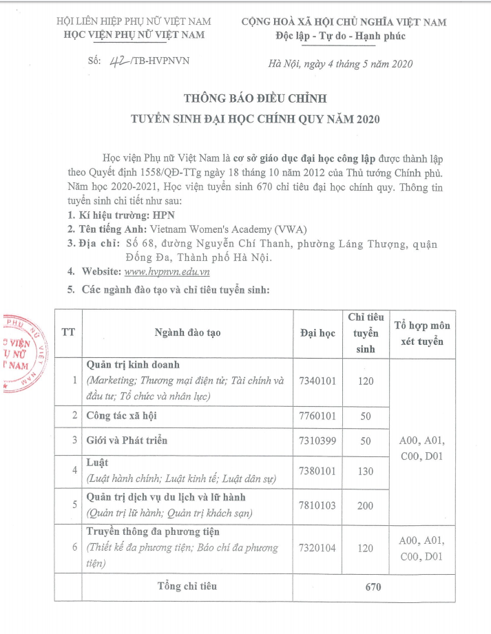 Tin tứcTHÔNG BÁO TUYỂN SINH ĐẠI HỌC CHÍNH QUY 2020 Posted on Tháng Ba 4, 2024 by admin(full) 04 Th3 XEM TOÀN VĂN THÔNG BÁO TẠI ĐÂY XÉT TUYỂN TRỰC TUYẾN PHIẾU ĐĂNG KÝ XÉT TUYỂN PHIẾU ĐĂNG KÝ XÉT TUYỂN THẲNG admin(full) Sinh viên trở lại trường hoàn thành kỳ học kỳ 2 năm học 2019 – 2020 Cơ hội việc làm cho sinh viên Học viện Phụ nữ Việt Nam