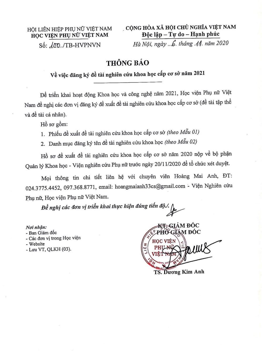 Tin tứcThông báo về việc đăng ký đề tài NCKH cấp cơ sở năm 2021 Posted on Tháng Ba 4, 2024 by admin(full) 04 Th3 Download Mẫu phiếu đề xuất đề tài NCKH (mẫu 1) và Danh mục đăng ký tên đề tài (Mẫu 2) TẠI ĐÂY admin(full) Thông báo Lịch thi Tin học chuẩn đầu ra Tổng hợp các danh hiệu của cuộc thi Sinh viên thanh lịch năm 2020