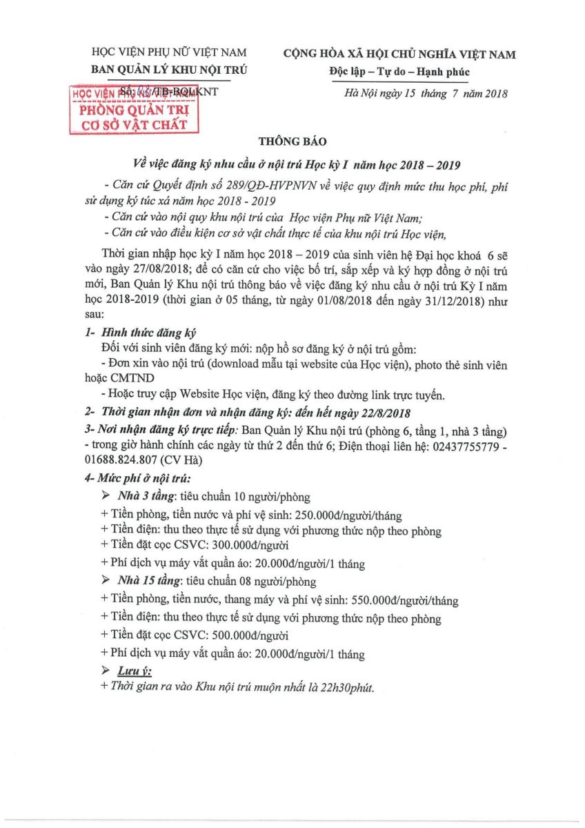 Tin tứcThông báo về việc đăng ký nhu cầu ở nội trú HKI năm học 2018 – 2019 Posted on Tháng Ba 4, 2024 by admin(full) 04 Th3 Sinh viên có nhu cầu đăng ký ở Nội trú đăng ký online TẠI ĐÂY Hoặc download Đơn đăng ký ở Nội trú TẠI ĐÂY admin(full) THÔNG BÁO TUYỂN SINH ĐẠI HỌC CHÍNH QUY 2018 Tuần sinh hoạt công dân – sinh viên năm học 2018 – 2019