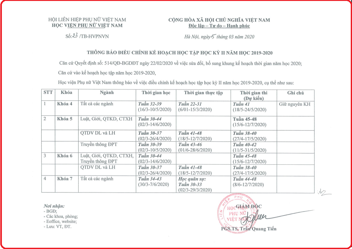Tin tứcThông báo về việc điều chỉnh kế hoạch học tập HK 2 năm học 2019 – 2020 Posted on Tháng Ba 4, 2024 by admin(full) 04 Th3 admin(full) Thông báo xét duyệt Đề tài NCKH của sinh viên 2019Thông báo chuyển hình thức học tập trung sang hình thức học trực tuyến