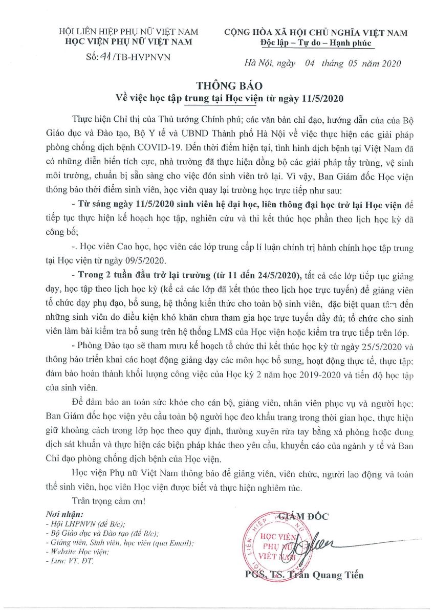 Tin tứcThông báo về việc học tập trung tại Học viện từ ngày 11/5 Posted on Tháng Ba 4, 2024 by admin(full) 04 Th3 admin(full) Thông báo về việc điều chỉnh kế hoạch học tập HK 2 năm học 2019 – 2020 Thông báo lịch đánh giá đạt chuẩn đầu ra Tin học lần 2 dành cho SV khóa 4