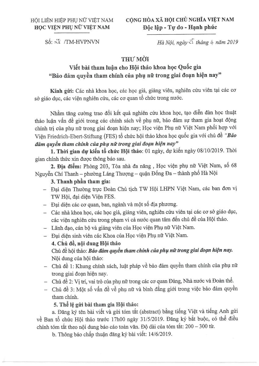 Tin tứcThư mời viết bài tham luận cho Hội thảo KH Quốc gia Posted on Tháng Ba 4, 2024 by admin(full) 04 Th3 admin(full) Học viện Phụ nữ Việt Nam tổ chức khóa tập huấn: Truyền thông trên mạng xã hội THÔNG BÁO TUYỂN SINH ĐẠI HỌC CHÍNH QUY 2019