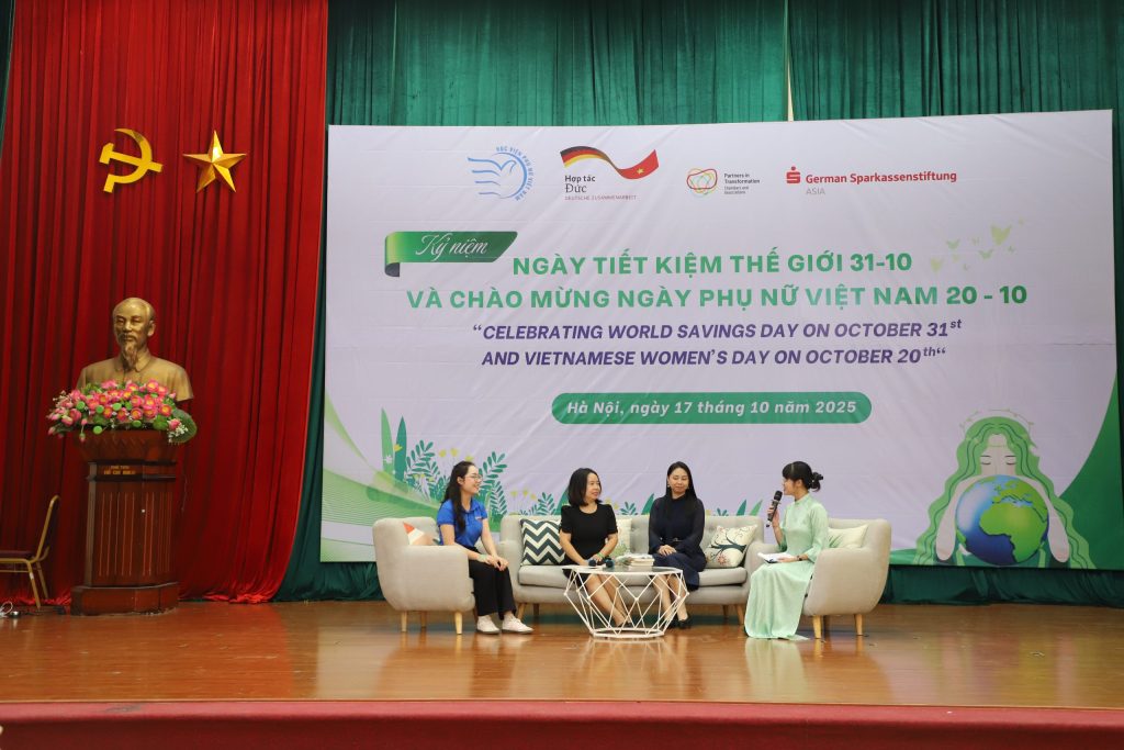 Chiều 17/10, hội trường Học viện Phụ nữ Việt Nam rộn ràng hơn bao giờ hết với sự góp mặt của hơn 200 sinh viên, cán bộ, giảng viên và khách mời tham dự chương trình “Kỷ niệm Ngày Tiết kiệm Thế giới và Chào mừng Ngày Phụ nữ Việt Nam 20/10”, do Học viện phối hợp cùng Quỹ Hợp tác Quốc tế các Ngân hàng Tiết kiệm Đức (DSIK) tổ chức. Không chỉ là một hoạt động giao lưu học tập, sự kiện mang đến những thông điệp ý nghĩa về văn hóa tiết kiệm, tư duy tài chính bền vững và ý thức bảo vệ môi trường, góp phần định hình phong cách sống có trách nhiệm của thế hệ trẻ trong thời đại mới.