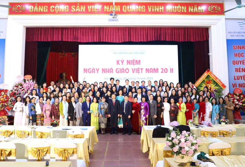 Sáng ngày 20/11, Học viện Phụ nữ Việt Nam tổ chức chương trình kỷ niệm Ngày Hiến chương Nhà giáo Việt Nam trong không khí trang trọng, ấm áp. Buổi lễ có sự tham dự và chúc mừng của đồng chí Nguyễn Thị Thu Hiền – Phó Chủ tịch Hội Liên hiệp Phụ nữ Việt Nam; đồng chí Nguyễn Nhất Linh – Bí thư Đoàn Thanh niên Mặt trận Tổ quốc, các đoàn thể Trung ương; Nghệ sĩ ưu tú – Thượng tá Ploong Thiết; cùng đông đảo viên chức, người lao động Học viện. Thay mặt Học viện, Giám đốc Trần Quang Tiến đã đọc diễn văn chào mừng ngày kỉ niệm đặc biệt ý nghĩa.