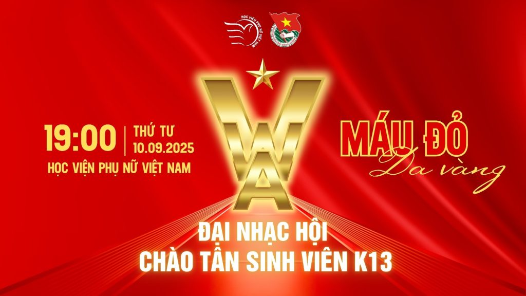 Tối ngày 10/9/2025, tại Học viện Phụ nữ Việt Nam sẽ diễn ra sự kiện được tuổi trẻ Học viện đặc biệt mong chờ – Đại nhạc hội Chào tân sinh viên K13 với chủ đề “Máu đỏ da vàng”. Đây không chỉ là một đêm hội âm nhạc rực rỡ sắc màu mà còn là lời chào đón nồng nhiệt dành cho hơn hai nghìn tân sinh viên Khóa 13, đánh dấu hành trình học tập, rèn luyện và trưởng thành cùng Học viện Phụ nữ Việt Nam.