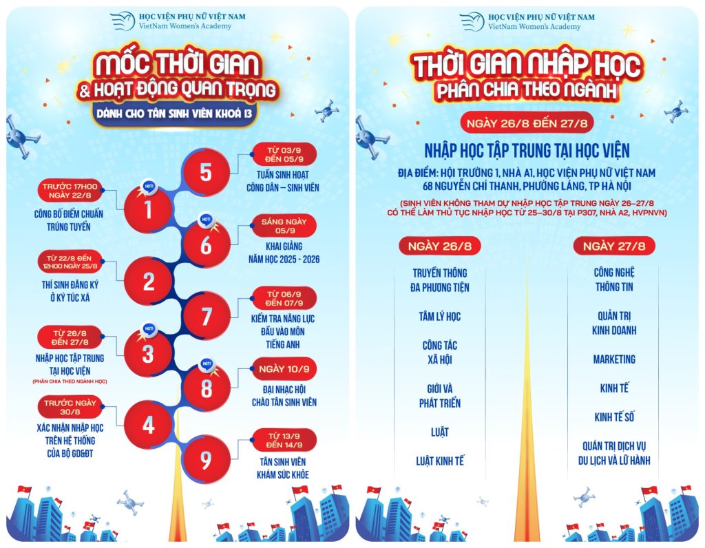 Không khí nhập học của Học viện Phụ nữ Việt Nam khóa 2025 đang đến gần. Với hàng nghìn tân sinh viên chuẩn bị bước vào một chặng đường mới, việc nắm rõ quy trình, mốc thời gian và thủ tục cần thiết là vô cùng quan trọng.