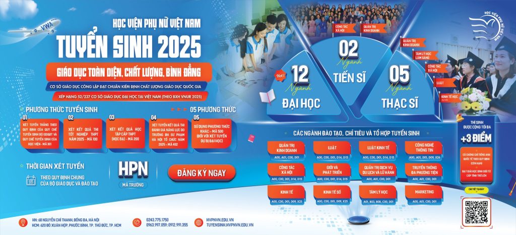 Ngày 05/5/2025, Học viện Phụ nữ Việt Nam ký Quyết định số 430/QD-HVPNVN ban hành Thông tin tuyển sinh đại học năm 2025.
