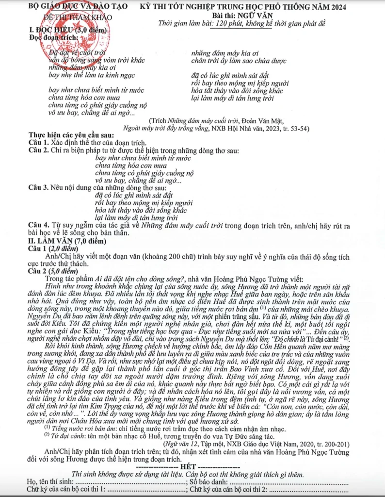 Đề thi tốt nghiệp THPT năm 2024 về cơ bản giữ ổn định cấu trúc như kỳ thi tốt nghiệp THPT năm 2023.
